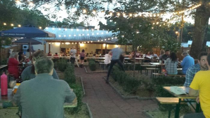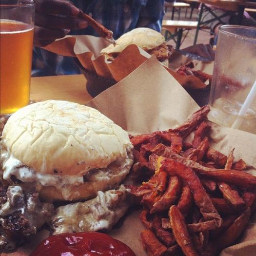 Known for gourmet hamburgers, large outdoor beer garden, and a wide variety of house-made sodas.