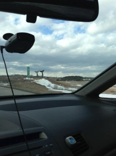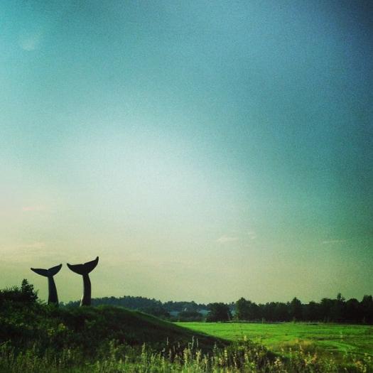 A sculpture of two whale tails positioned beside Interstate 89 created by Jim Sardonis in 1989. Accessible on foot from the nearby private walking trails.