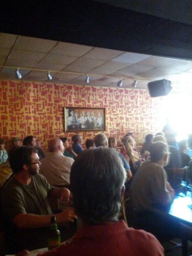 Sunday brunch from 11am-2pm. Kitchen open 4pm-1am. Menu - Burrito, Quesadilla, Nachos, Beans & Rice, Chip Baskets. Choice of Beef, Chicken and Vegan. Order food at bar then take slip to kitchen window.